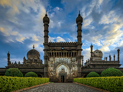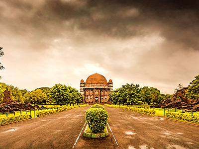 Vijayapur was a gateway to the Deccan Sultanate which extended from North Karnataka to central India. Located in the historically rich Deccan, the city was established in the 10th-11th centuries by the Kalyani Chalukyas and was ruled by various dynasties including the Adil Shahi kings who have had a major influence on the region. It is dotted with mosques, mausoleums, palaces, fortifications, watchtowers, and strong gateways, with the massive Gol Gumbaz dominating the landscape for miles around.