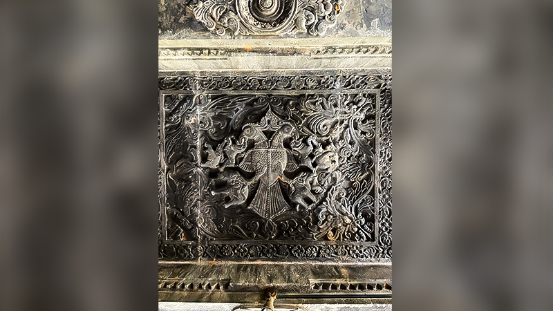 The inside structure of the Veerabhadra temple has some astonishing works of craftsmanship with structures of various animals like lions, tigers, elephants, horses, and many other birds. The sanctum ceiling has a beautifully carved Gandaberunda. Gandaberunda is a two-headed bird symbolizing strength and power and was a symbol of Vijayanagara Kings, Wadiyars of Mysore, and the Keladi Empire. This Gandaberunda is a symbol carried on most of the heritage buildings and monuments in Karnataka. Although the temple is still active, it is maintained and protected by the Archaeological Survey of India.