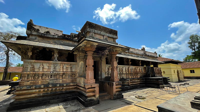 Nestled in the town that was ruled by Nayaks also known as Keladi rulers, the temple dating back to 1500 AD are an outstanding historic example of heritage and architecture. The temple was commissioned by Nayakas ruler, Chowdappa Nayaka. Nayakas, once a part of the Vijayanagara Dynasty ruled Ikkeri and Keladi and hence constructed the temples in these towns based on Hoysala- Dravidian style of architecture. Intricate and exquisite wooden carvings inside and outside the temple depicting various stories will leave in spell-bound. Carvings of a woman paying homage to the deity Ganesh on a 24 feet high pillar in the backyard are believed to be of Keladi queen Chennamma who bravely fought Sultan Aurangzeb. Popularly known as Rameshwara Temple, the temple showcases the glorious past of the empire depicting the rich heritage, culture, and art from the era.