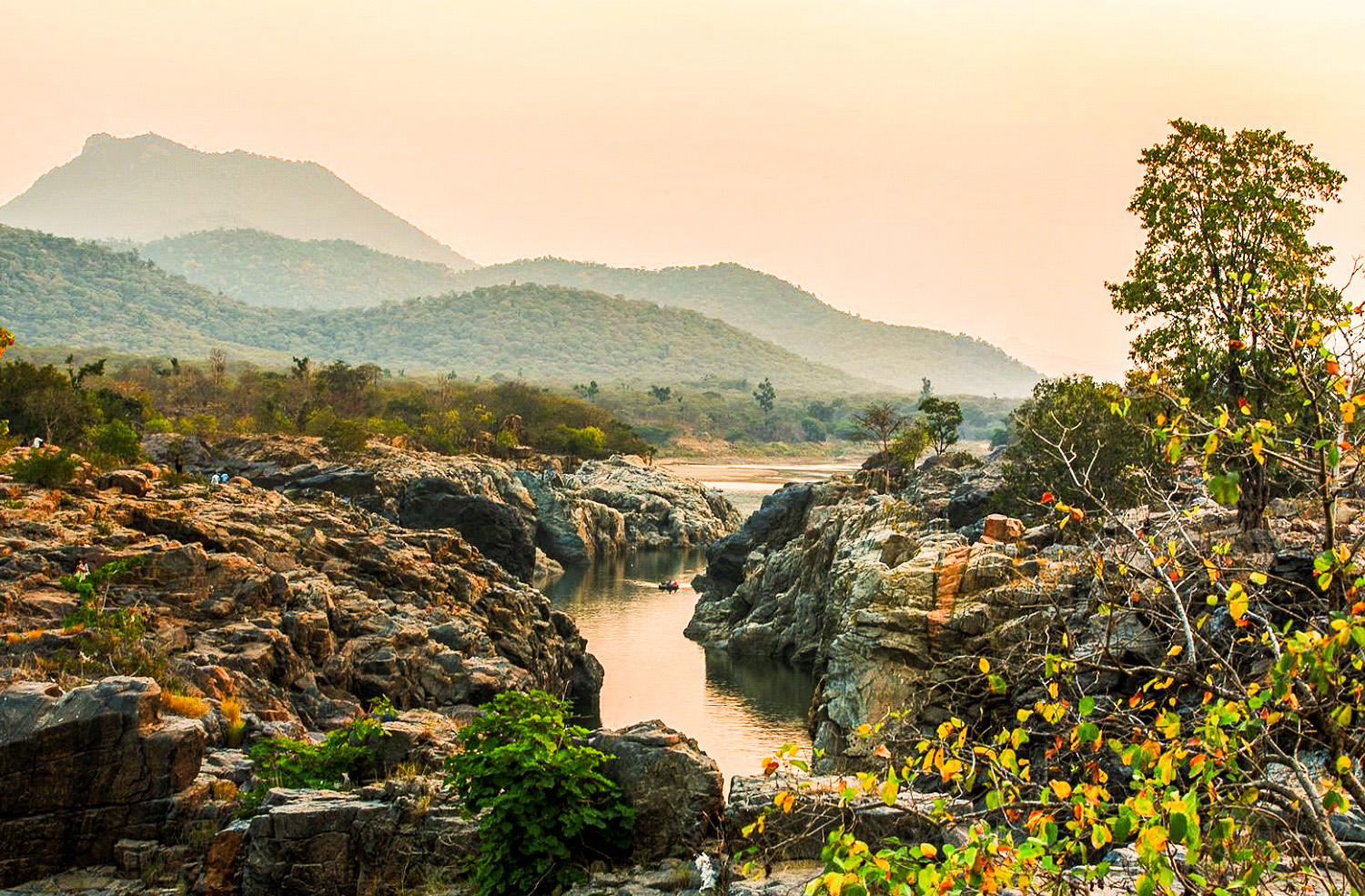 - Hogenakkal Waterfalls: Hogenakkal waterfalls is a scenic amalgamation of rock, water and mist located on Karnataka-Tamil Nadu border. ‘Hoge’ means smoke and ‘Kallu’ means rock in Kannada. Hogenakkal essentially means smoke over the rocks, which is how it looks when there’s ample water falling over the rocks as river Kaveri enters Tamil Nadu from Karnataka.