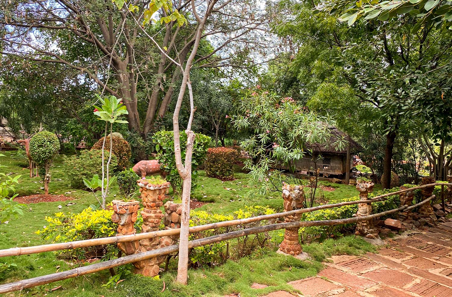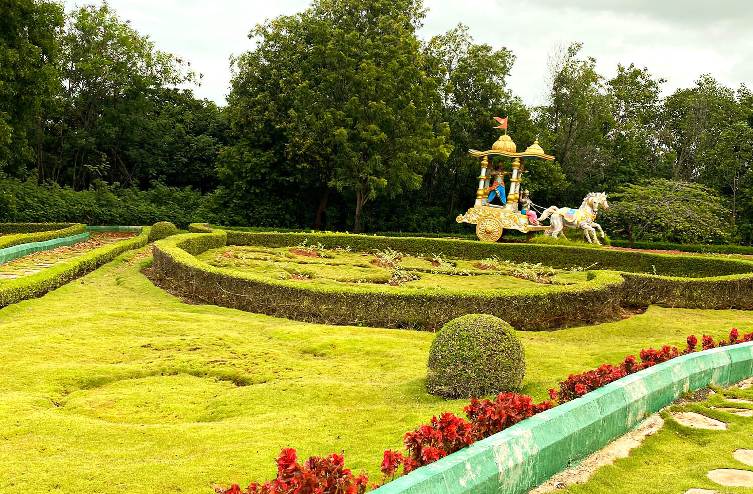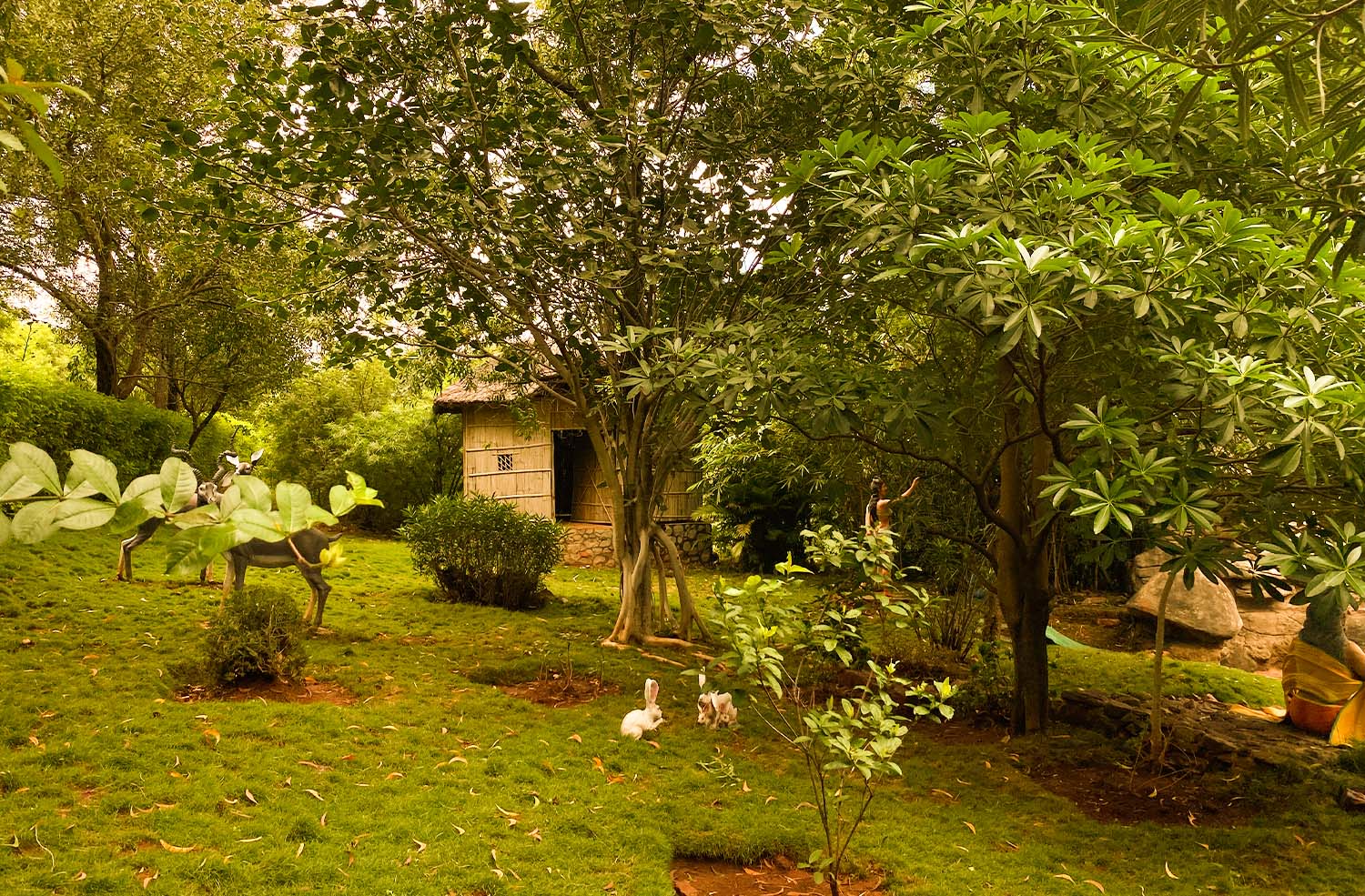 The garden attracts children by viewing different childhood activities of Lava and Kush like playing in their cradle with mother Sita, taking education with their Gurus etc.