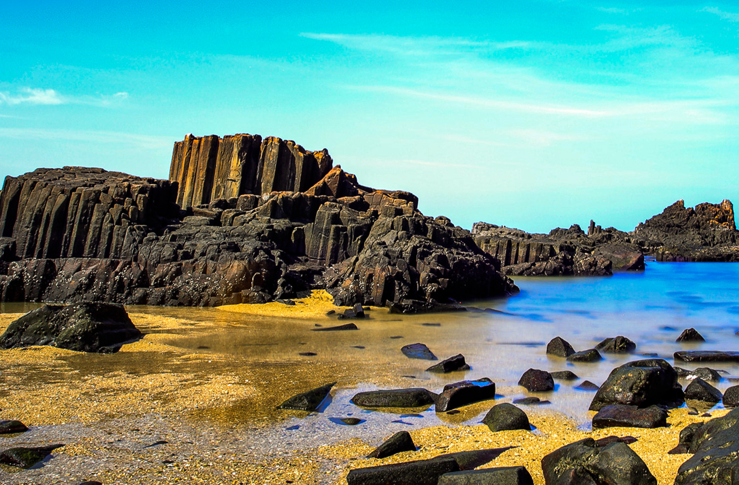 - St Mary’s Island(10 km): A National Geological Monument, St. Mary's Island is a quaint island just off the coast of Udupi. A 30-minute boat ride away from Malpe harbour, St. Mary's Island is a geological treasure and hosts some of the most beautiful beaches in the country. The island is around 300m long and 100m wide. It is famous for its unique salt rock formations. Due to this geological importance, St Mary’s Island is declared as a National Geological Monument. Watching the sunset standing on the crystalline rocks is one of the most alluring experiences on the island. St. Mary’s Island still bears the cross that was placed by Vasco Da Gama in 1498.